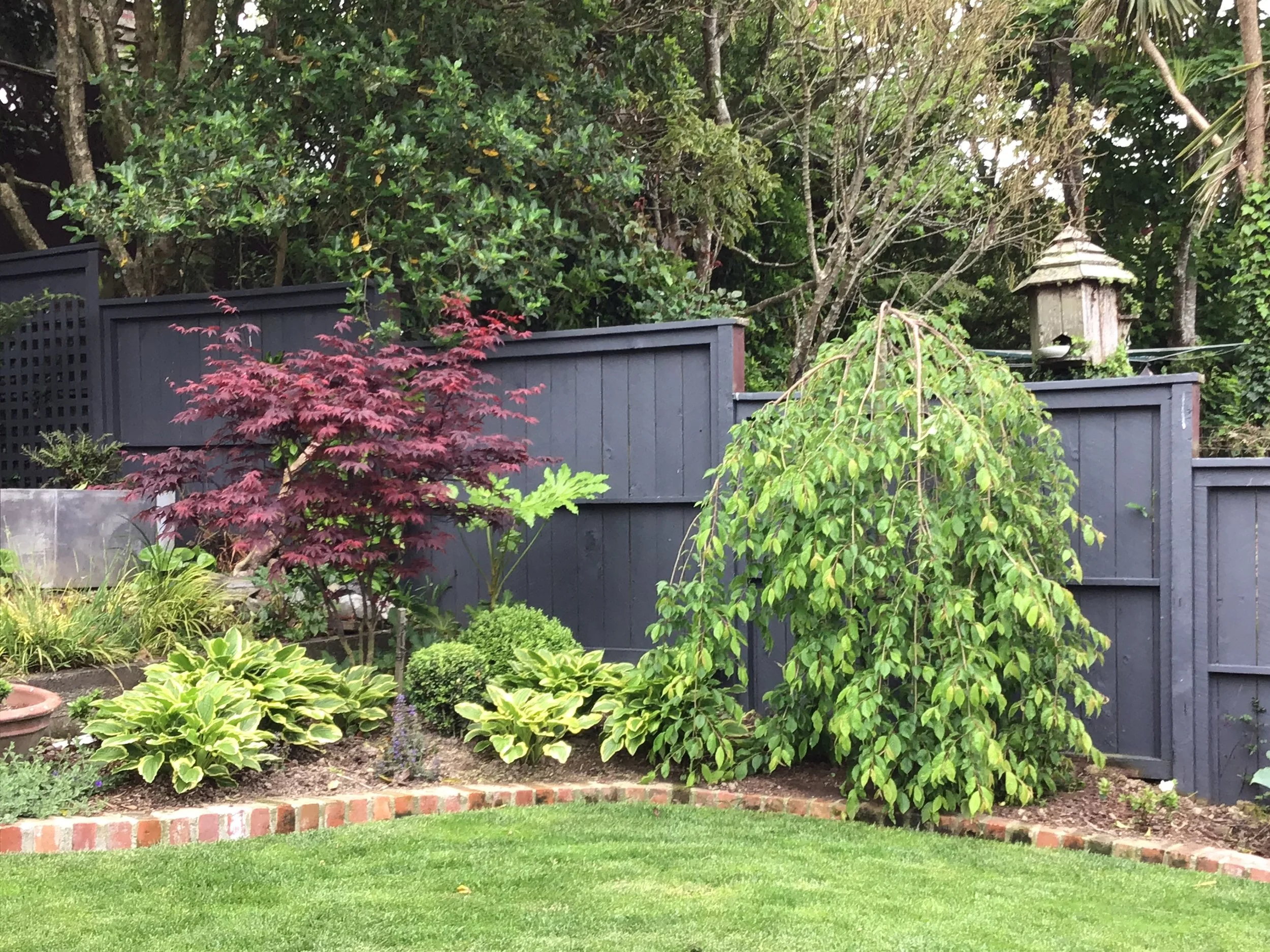When we bought the house, the original back garden was standard and boring - just a large rectangle with straight lines of plants (overgrown camelias and hebes) following the fences and skirting a patchy lawn…