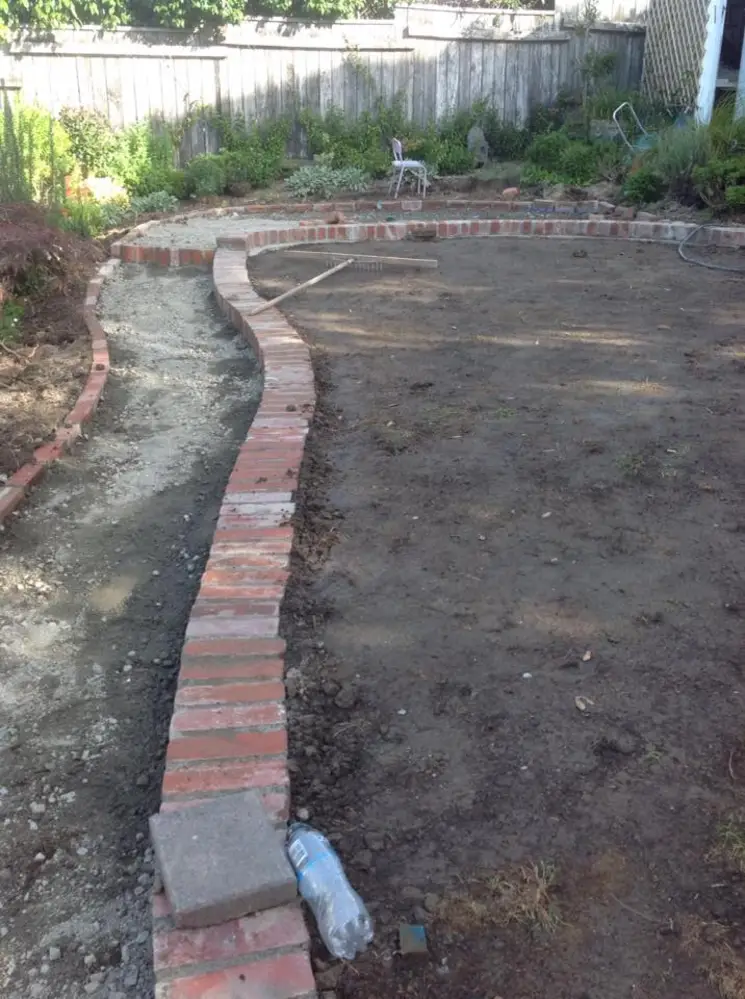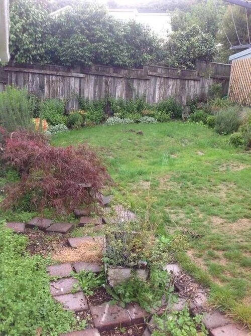 We hired a digger and family and unsuspecting friends joined in. Cement and up-cycled bricks bought online were the only extras needed to get this done! Ten days later, the hardscaping was completed, and a new lawn was rolled out. The sense of accomplishment as we finished up is hard to beat – even today!